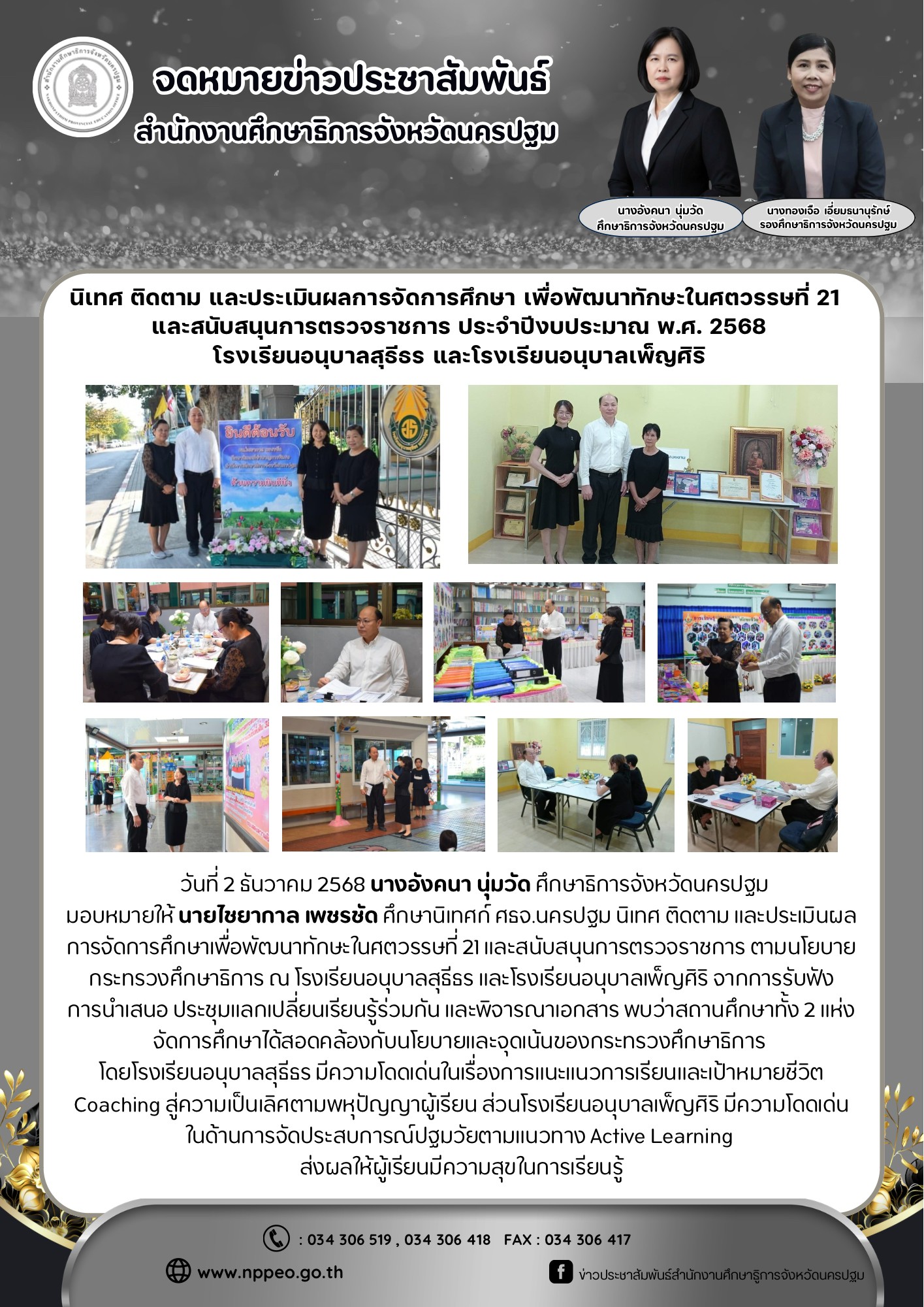 นิเทศ ติดตาม และประเมินผลการจัดการศึกษาเพื่อพัฒนาทักษะในศตวรรษที่ 21 และสนับสนุนการตรวจราชการ ตามนโยบายกระทรวงศึกษาธิการ ณ โรงเรียนอนุบาลสุธีธร และโรงเรียนอนุบาลเพ็ญศิริ