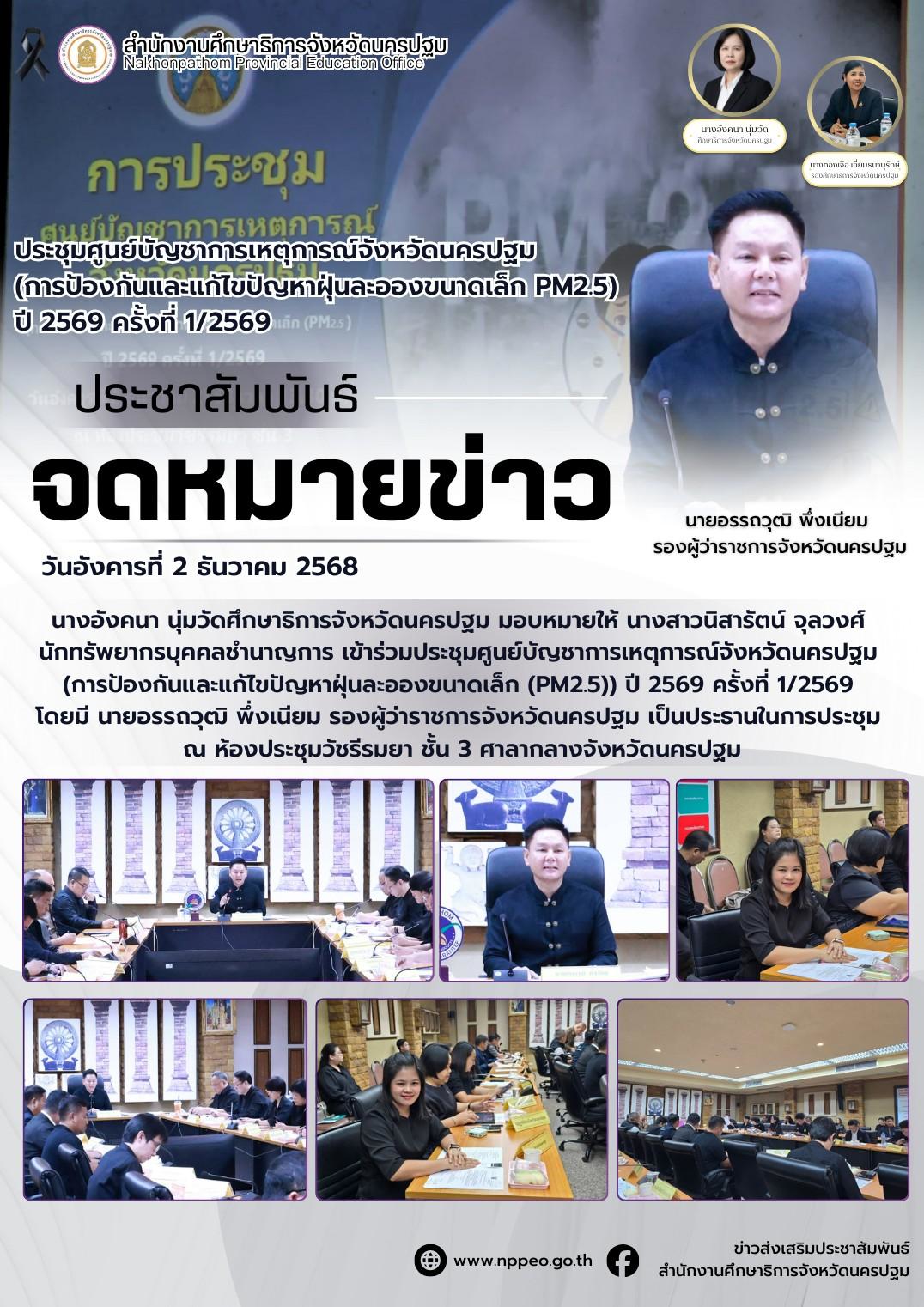 ประชุมศูนย์บัญชาการเหตุการณ์จังหวัดนครปฐม (การป้องกันและแก้ไขปัญหาฝุ่นละอองขนาดเล็ก (PM2.5)) ปี 2569 ครั้งที่ 1/2569