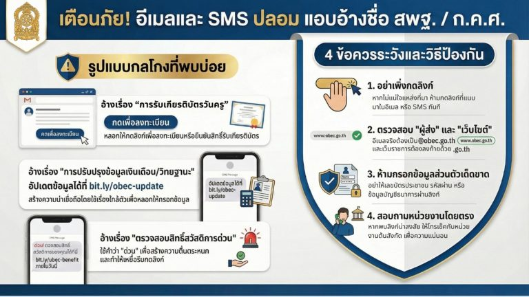 เตือนภัย มิจฉาชีพส่งอีเมลและ SMS ปลอม แอบอ้างชื่อ สพฐ. และ ก.ค.ศ.