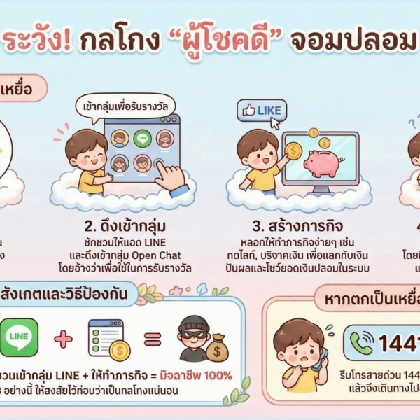 ขอให้ทุกท่านตระหนักและเพิ่มความระมัดระวังต่อภัยคุกคามทางไซเบอร์ ซึ่งมีการเปลี่ยนแปลงรูปแบบและซับซ้อนขึ้นอย่างต่อเนื่อง การมีสติและปฏิบัติตามแนวทางที่แนะนำอย่างสม่ำเสมอจะช่วยให้ทุกท่านปลอดภัยจากการหลอกลวงทางไซเบอร์ได้
