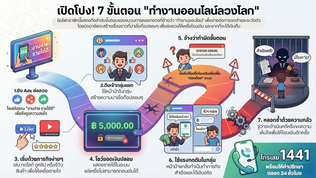 รู้ทัน 7 ขั้นตอน! แกะรอยกลโกง “ทำงานออนไลน์”