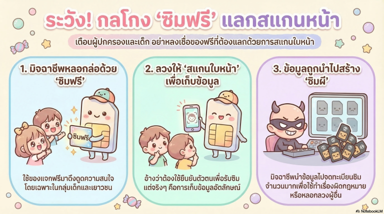 ในยุคที่เราเดินไปไหนก็เจอแต่บูธกิจกรรมและโปรโมชันล่อตาล่อใจหลายครั้งที่เด็กๆ หรือแม้แต่ผู้ปกครองเองมักจะถูกดึงดูดด้วยข้อเสนอของฟรี ไม่ว่าจะเป็นขนม ของเล่น หรือของใช้จุกจิก แต่หนึ่งในไอเทมที่ต้องระวังเป็นพิเศษในขณะนี้คือ “ซิมการ์ดโทรศัพท์” ที่ดูเหมือนจะไม่มีพิษภัย แต่เบื้องหลังอาจแฝงไปด้วยอันตรายที่คาดไม่ถึง