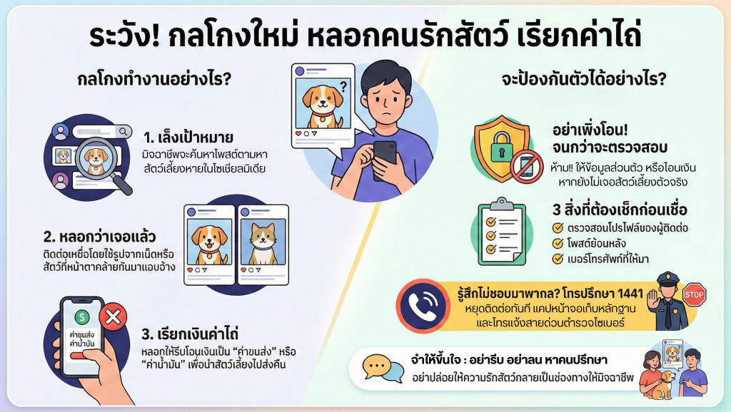 เตือนภัย! กลโกงใหม่มิจฉาชีพ หลอกคนเลี้ยงสัตว์ที่กำลังตามหาน้องหมาน้องแมวหาย