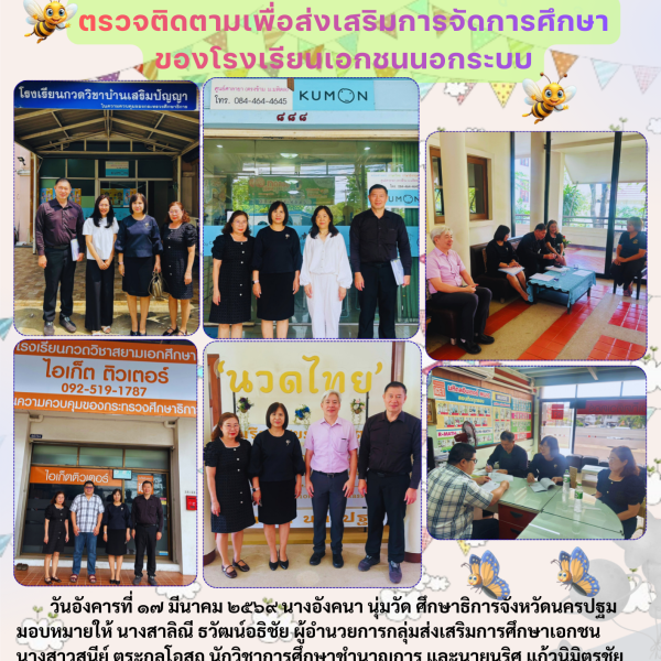 วันอังคารที่ ๒๘ ตุลาคม ๒๕๖๘ นางอังคนา นุ่มวัด ศึกษาธิการจังหวัดนครปฐม มอบหมายให้ นางสาลิณี ธวัฒน์อธิชัย ผู้อำนวยการกลุ่มส่งเสริมการศึกษาเอกชน เข้าร่วมประชุมนำเสนองานในภารกิจกลุ่มส่งเสริมการศึกษาเอกชน สำนักงานศึกษาธิการจังหวัดนครปฐม กับนักศึกษาระดับปริญญาโท สาขาวิชาบริหารการศึกษา มหาวิทยาลัยเอเชียอาคเนย์ มหาวิทยาลัยปทุมธานี มหาวิทยาลัยคริสเตียน และมหาวิทยาลัยกรุงเทพธนบุรี โดยมีการแลกเปลี่ยนเรียนรู้ประสบการณ์ทำงาน ของกลุ่มส่งเสริมการศึกษาเอกชน ณ ห้องประชุมชั้น 3 สำนักงานศึกษาธิการจังหวัดนครปฐม อำเภอเมืองนครปฐม จังหวัดนครปฐม