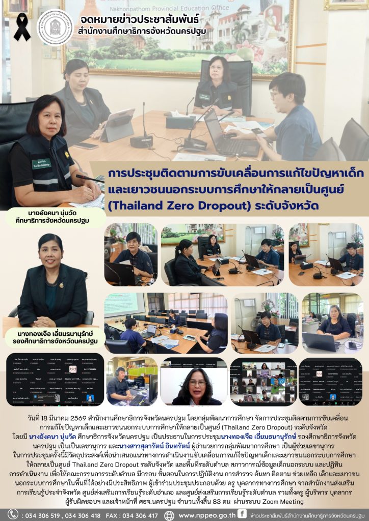 การประชุมติดตามการขับเคลื่อนการแก้ไขปัญหาเด็กและเยาวชนนอกระบบการศึกษาให้กลายเป็นศูนย์ (Thailand Zero Dropout) ระดับจังหวัด
