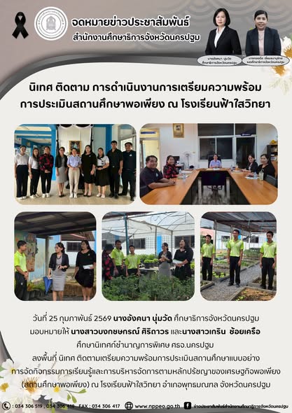 วันที่ 6 กุมภาพันธ์ 2569 นางอังคนา นุ่มวัด ศึกษาธิการจังหวัดนครปฐม พร้อมด้วย นางทองเจือ เอี่ยมธนานุรักษ์ รองศึกษาธิการจังหวัดนครปฐม ลงพื้นที่ กำกับ ติดตาม การดำเนินโครงการรณรงค์สัปดาห์ประชาธิปไตยในสถานศึกษา ตรวจเยี่ยม ให้คำแนะนำ ในการดำเนินโครงการฯ ให้ทันกำหนดระยะเวลาก่อนการเลือกตั้งสมาชิกสภาผู้แทนราษฎรและการลงประชามติในวันเดียวกัน กับการเลือกตั้งฯ ณ วิทยาลัยการอาชีพบางแก้วฟ้า อำเภอนครชัยศรี จังหวัดนครปฐม