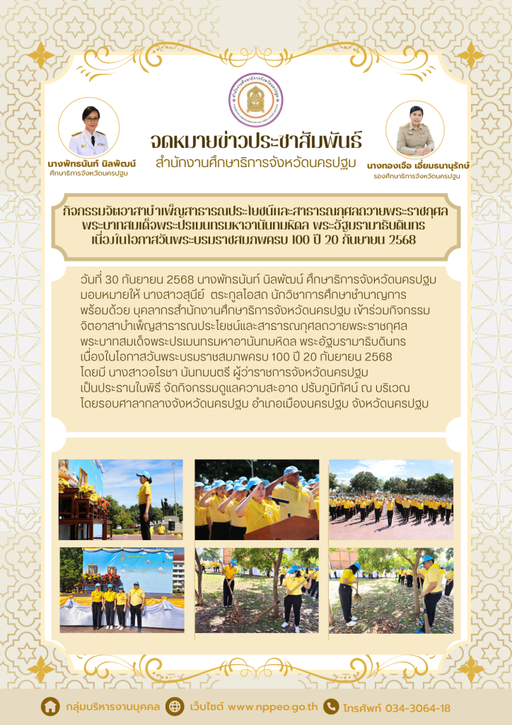 กิจกรรมจิตอาสาบำเพ็ญสาธารณประโยชน์และสาธารณกุศลถวายพระราชกุศลพระบาทสมเด็จพระปรเมนทรมหาอานันทมหิดล พระอัฐมรามาธิบดินทร เนื่องในโอกาสวันพระบรมราชสมภพครบ 100 ปี 20 กันยายน 2568