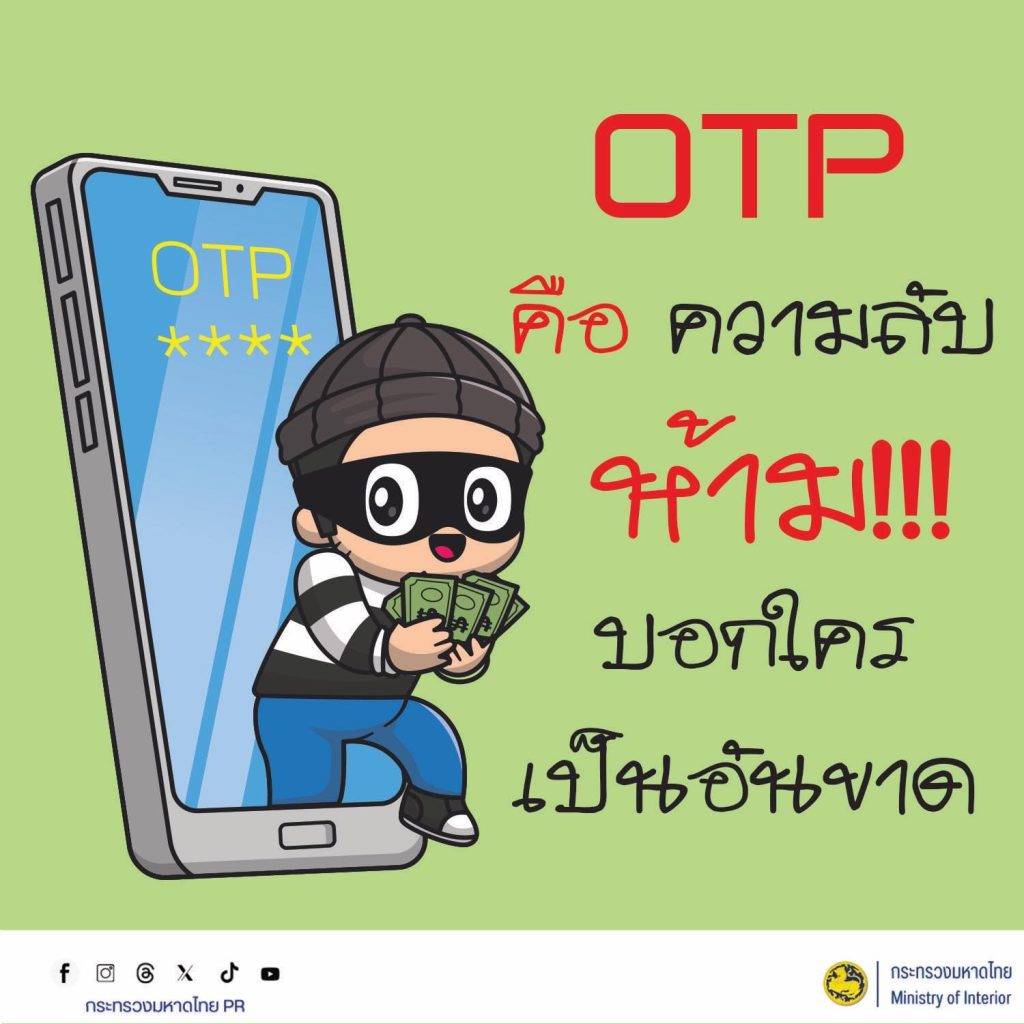 มิจฉาชีพมักอ้างเป็นเจ้าหน้าที่รัฐ / ธนาคาร / ขนส่ง หลอกให้บอกรหัส OTP